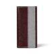 The red stitching runs throughout the entire wallet — binding the burgundy leather and the cowhide insert together with a thread that ties the two materials into one deliberate object.